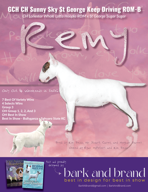 Graphic design work for breeders, handlers, and pet businesses, including stud ads, litter announcements, and promotional materials, seen in print and online worldwide.